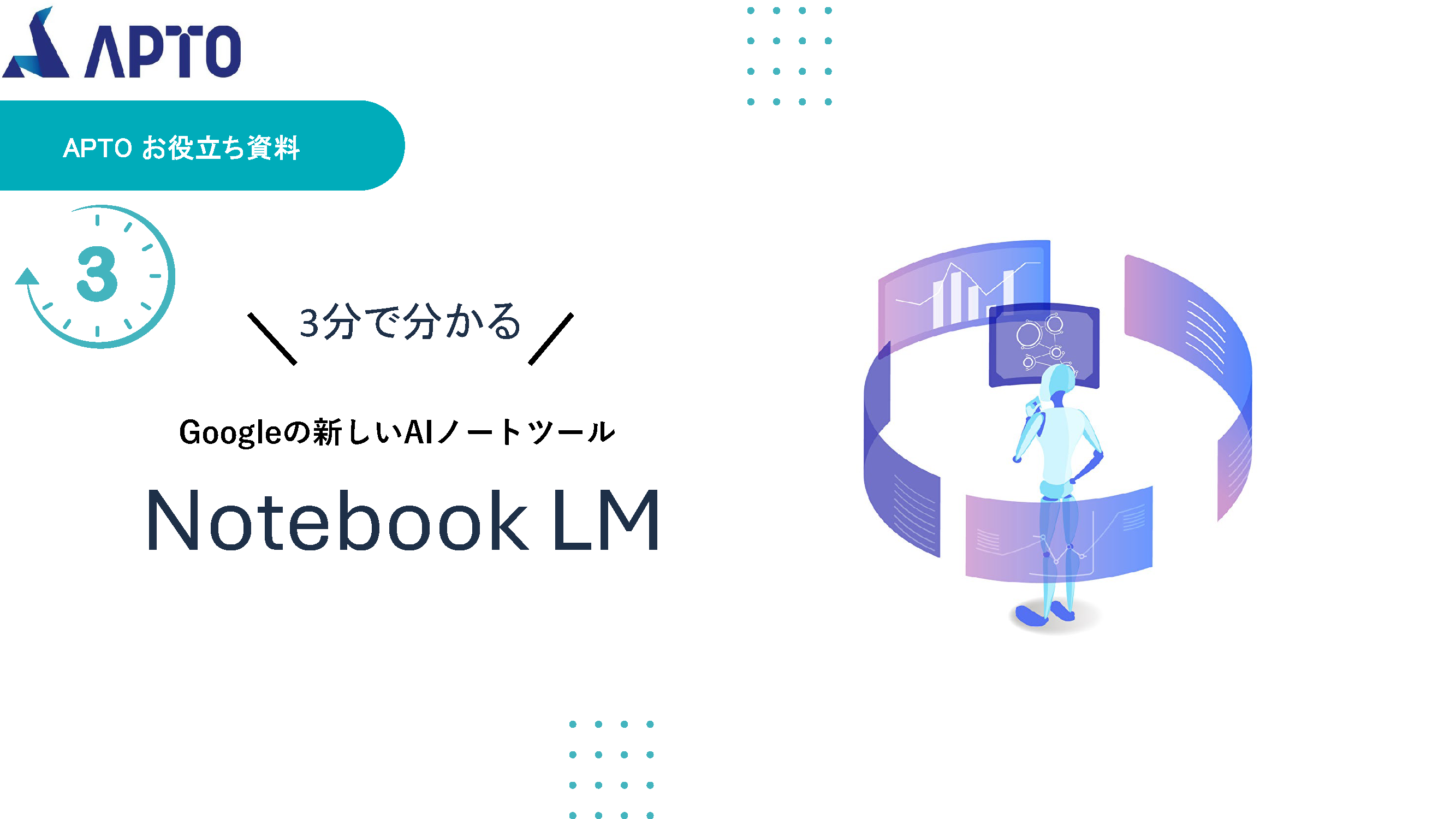 この資料は、ユーザーがアップロードした情報に基づき、LLMがその情報に対応した質問に回答する機能を持つGoogle社が提供する生成AI 、Notebook LMについて使用方法や活用事例について紹介しています。