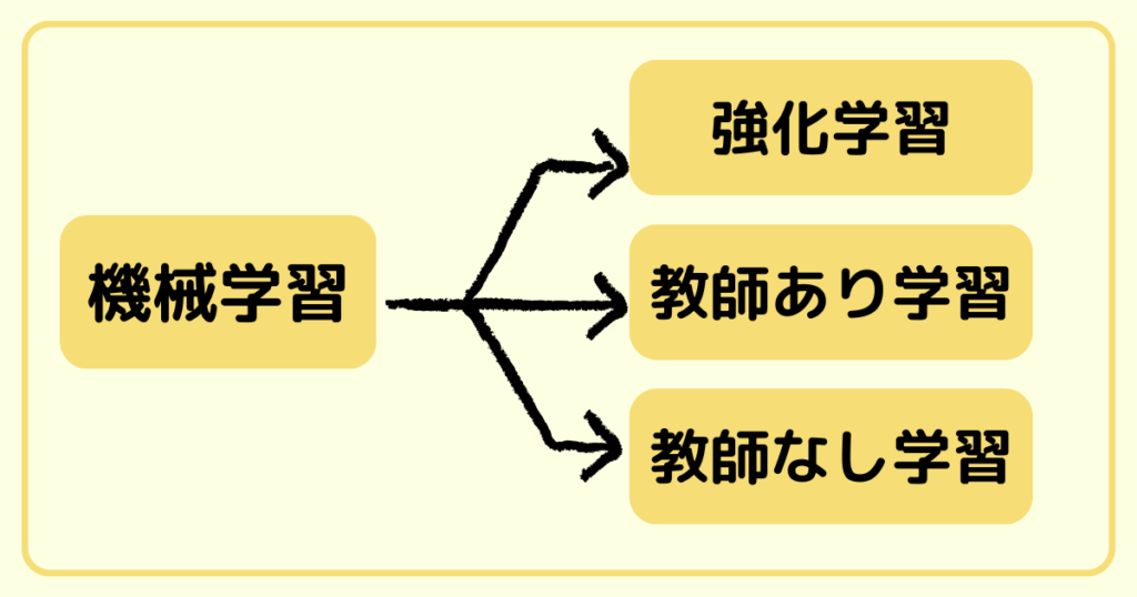 機械学習は「強化学習」「教師あり学習」「教師なし学習」という3つの手法に分けることができます。いずれも大量のデータを読み込ませることには変わりはありませんが、それぞれの学習において準備するデータに違いがあります。
